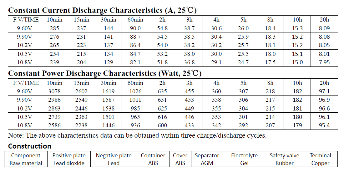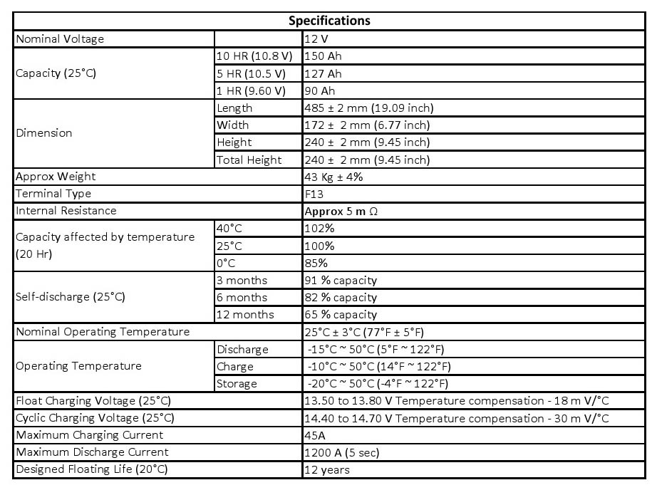 Specifications (Gel-12v 150Ah)