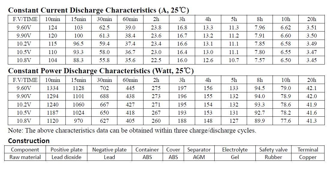 Specifications (Gel-12v 65Ah)