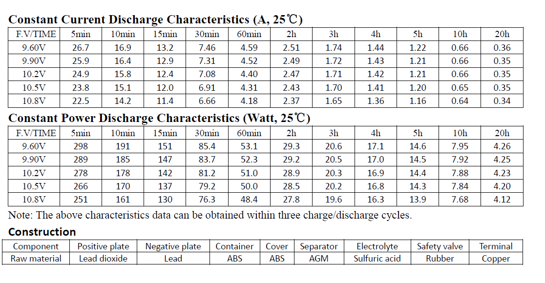 Specifications (Lead Acid-12v 7Ah)