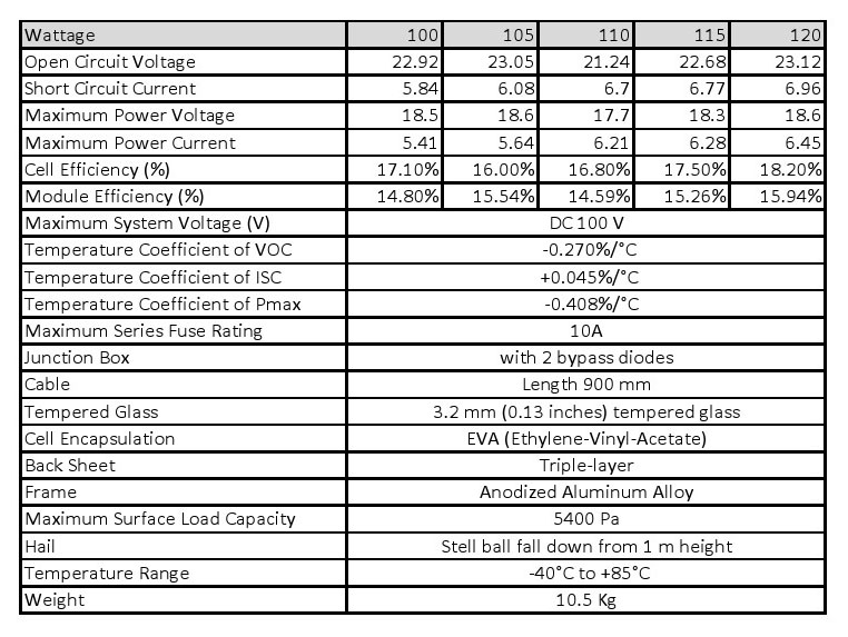 Panels - Polycrystalline: 100-120W
